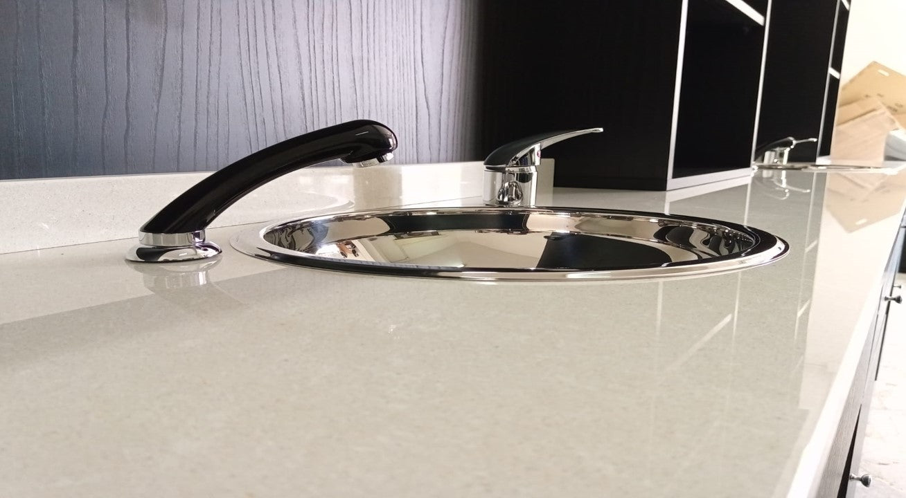 postazione singola misure di fabbrica L 300 x H 205 x P 40 disponibili con lavello ad incasso barber colore bianco o nero , lavello da appoggio " ciotola " o lavello ad incasso in acciaio , piano di lavoro in Okite